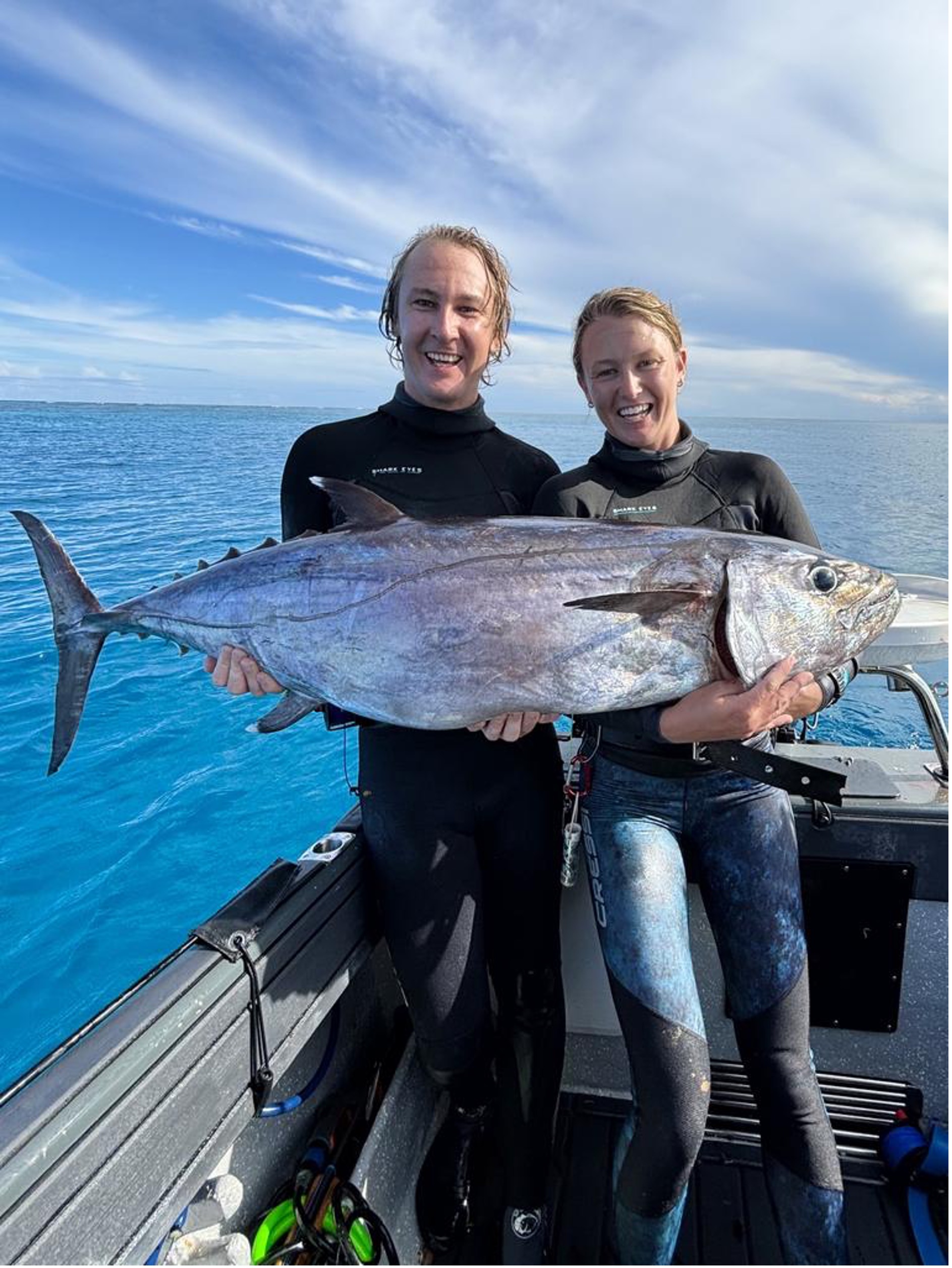 “Spearfishing is really good fun. You have to be really, really calm and get your heartrate down to get to the bottom of the ocean,” she says.